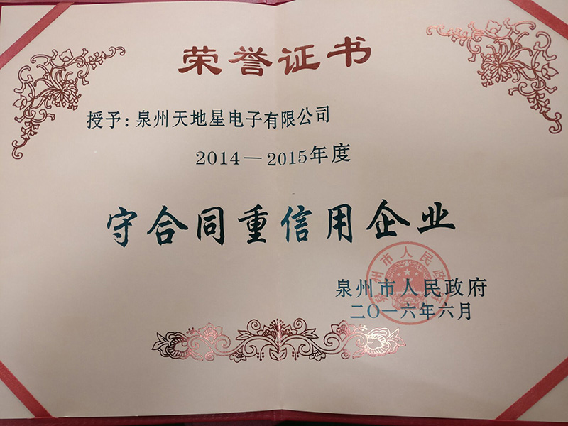 2014-2015泉州市守合同重信用企業