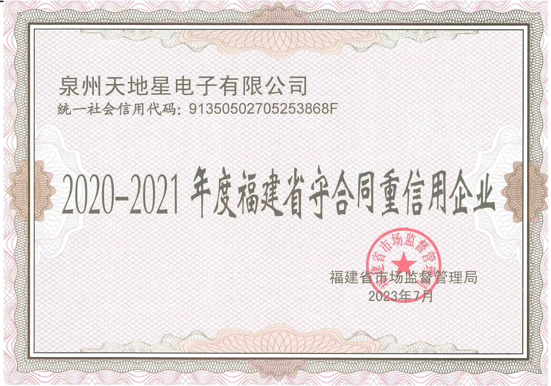 2020-2021福建省守合同重信用企業